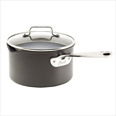 Buy Emerilware from All-Clad Hard-Anodized Nonstick Sauce Pan with Pour Spout and Straining Lid 3-qt. Now