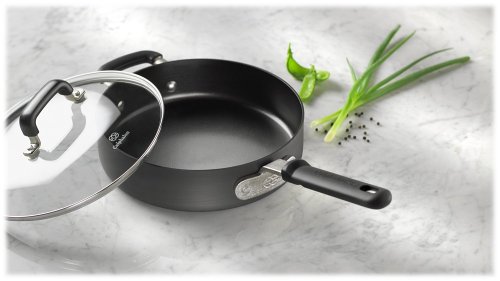Buy Cheap Calphalon Everyday Nonstick 3-Quart Covered Saute From Here Now!Quick searing. Superior browning. Easy cleaning. Calphalon's nonstick sauté pans are where great, low-fat and no-fat cooking takes shape. Straight sides maximize your flat cooking surface. The thick bottom prevents scorching, yet responds exceptionally well to subtle adjustments in temperature --essential for fast-cooking methods like sautéing. The low profile prevents foods from steaming while giving you easy access with utensils. Traditional styling plus soft grip comfort makes Everyday Nonstick the perfect choice for daily cooking needs. Classic vessel shapes allow for a variety of techniques while the comfortable silicone handles stay cool on the stove top. Heavy duty hard-anodized exterior won't chip or scratch. Durable nonstick interior allows food to release easily and makes clean up a breeze. Tempered glass lids allow you to keep an eye on what's cooking. All pieces are oven safe to 450 degrees which allows you true versatility in the kitchen.