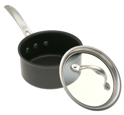 - 1-1/2-quart saucepan with glass lid combines two technologies for unparalleled nonstick cooking
